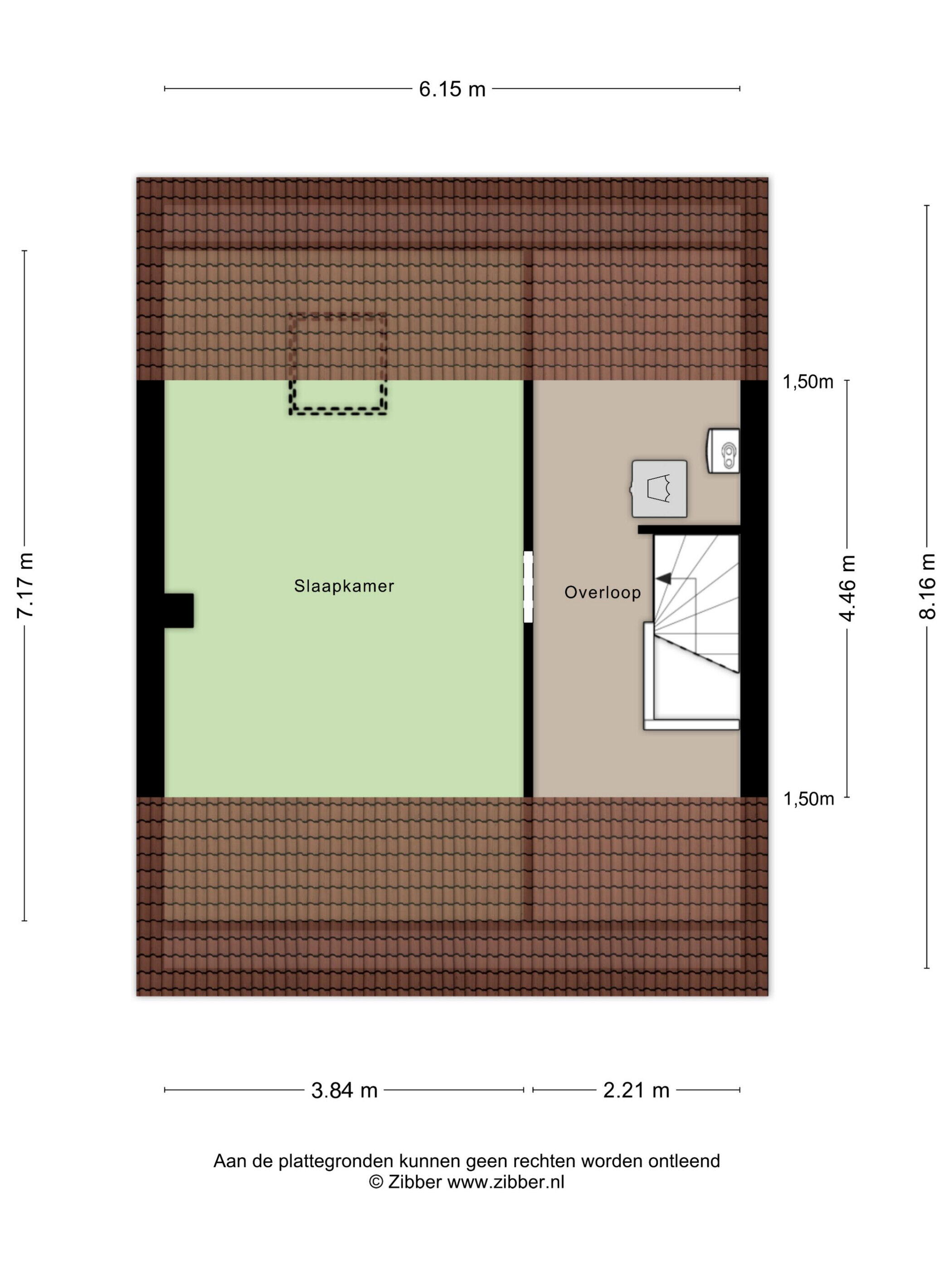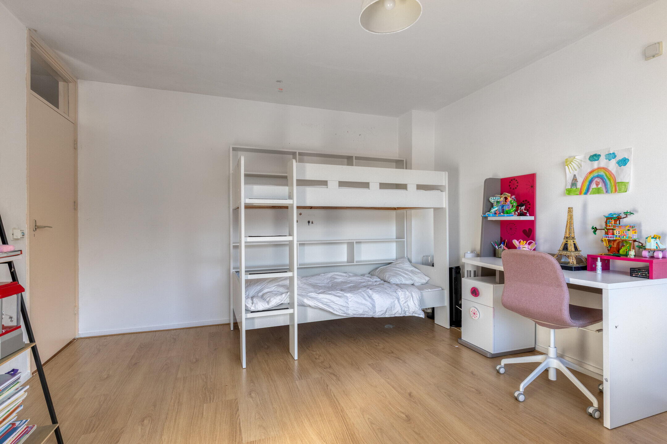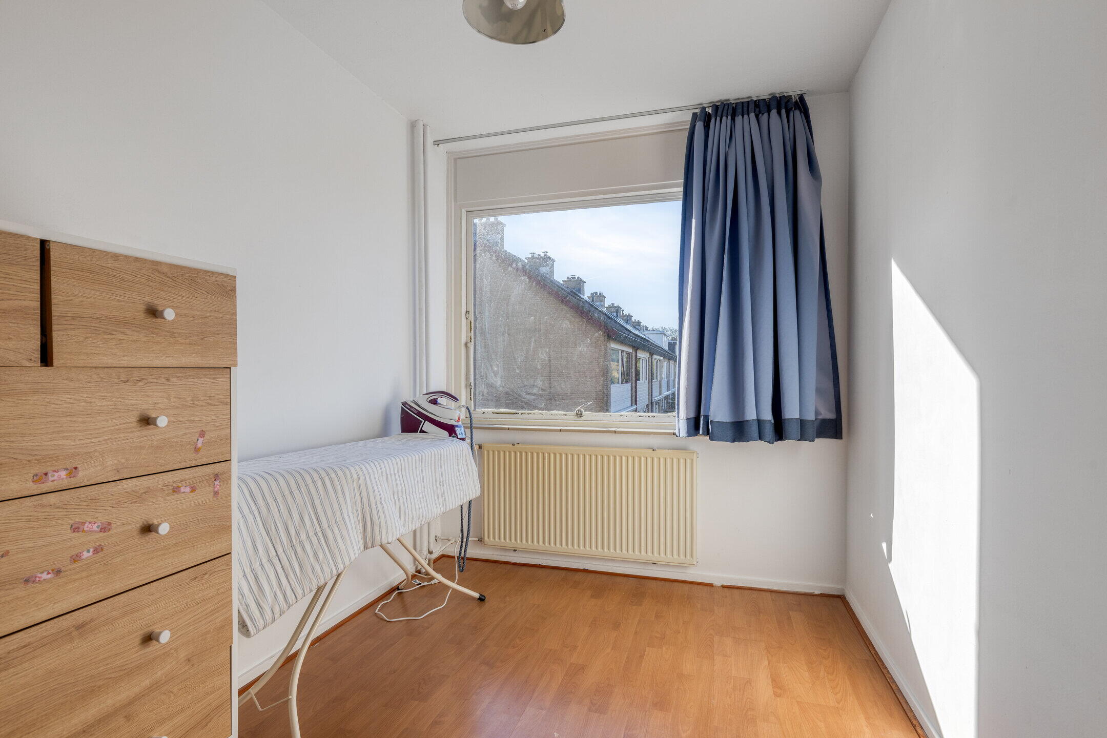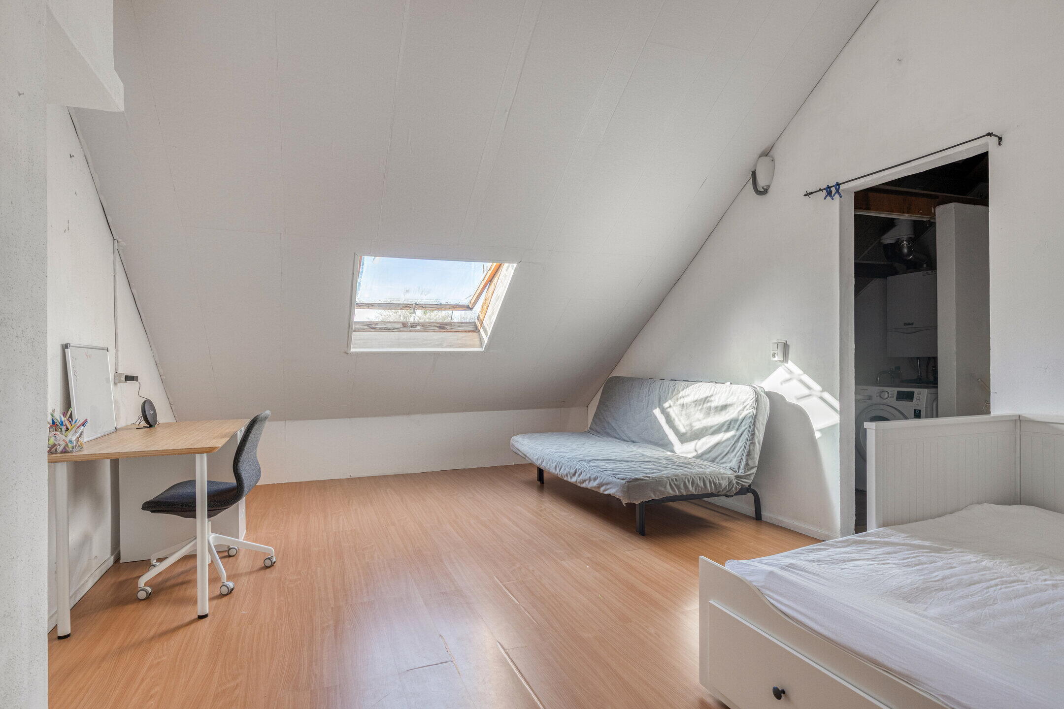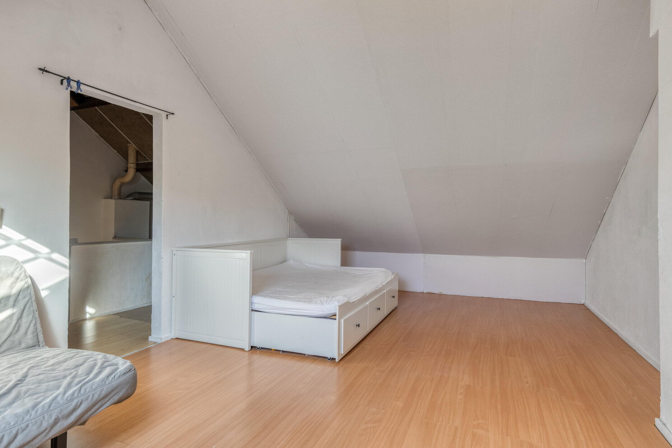 Riante zolderkamer van netto 17 m² (gerekend vanaf de 1,50 lijn) met dakraam en veel bergruimte. Zeker met het plaatsen van een dakkapel is deze kamer goed op te delen in twee separate (slaap)kamers.