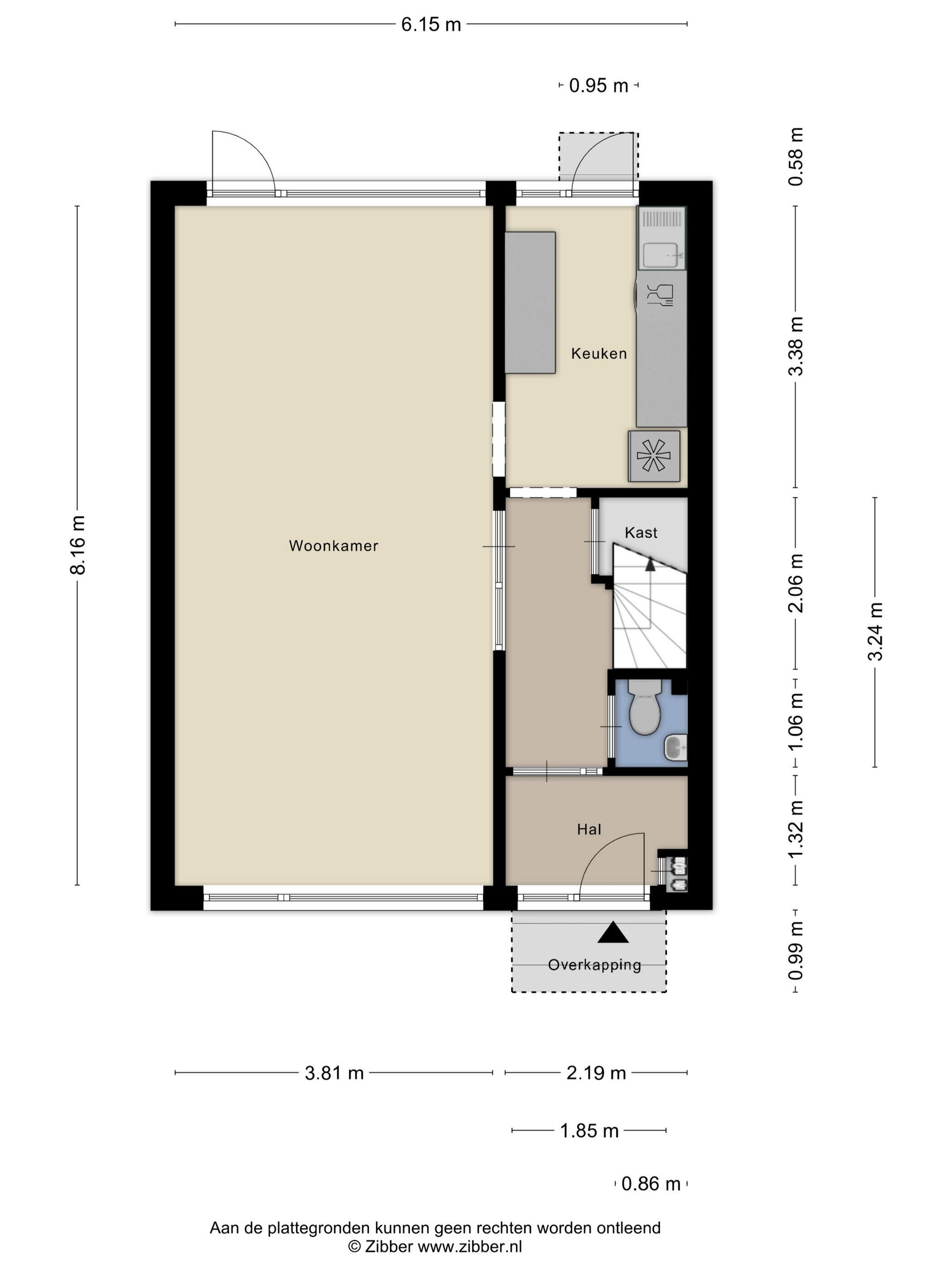 - 64 m² (10 meter diep en 6.4 meter breed)